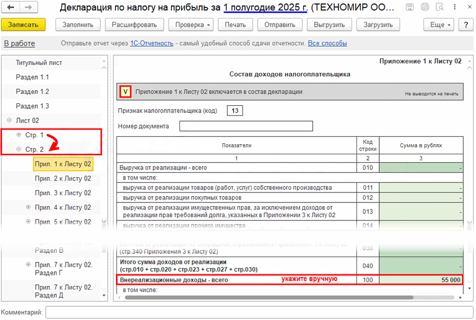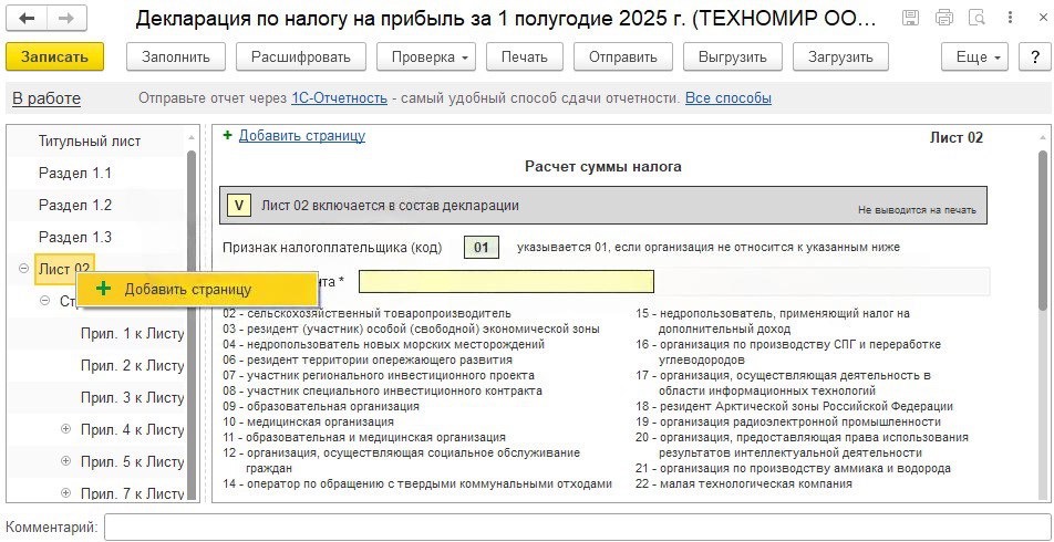 - Откройте декларацию – «Добавить стр. (Лист 02)».